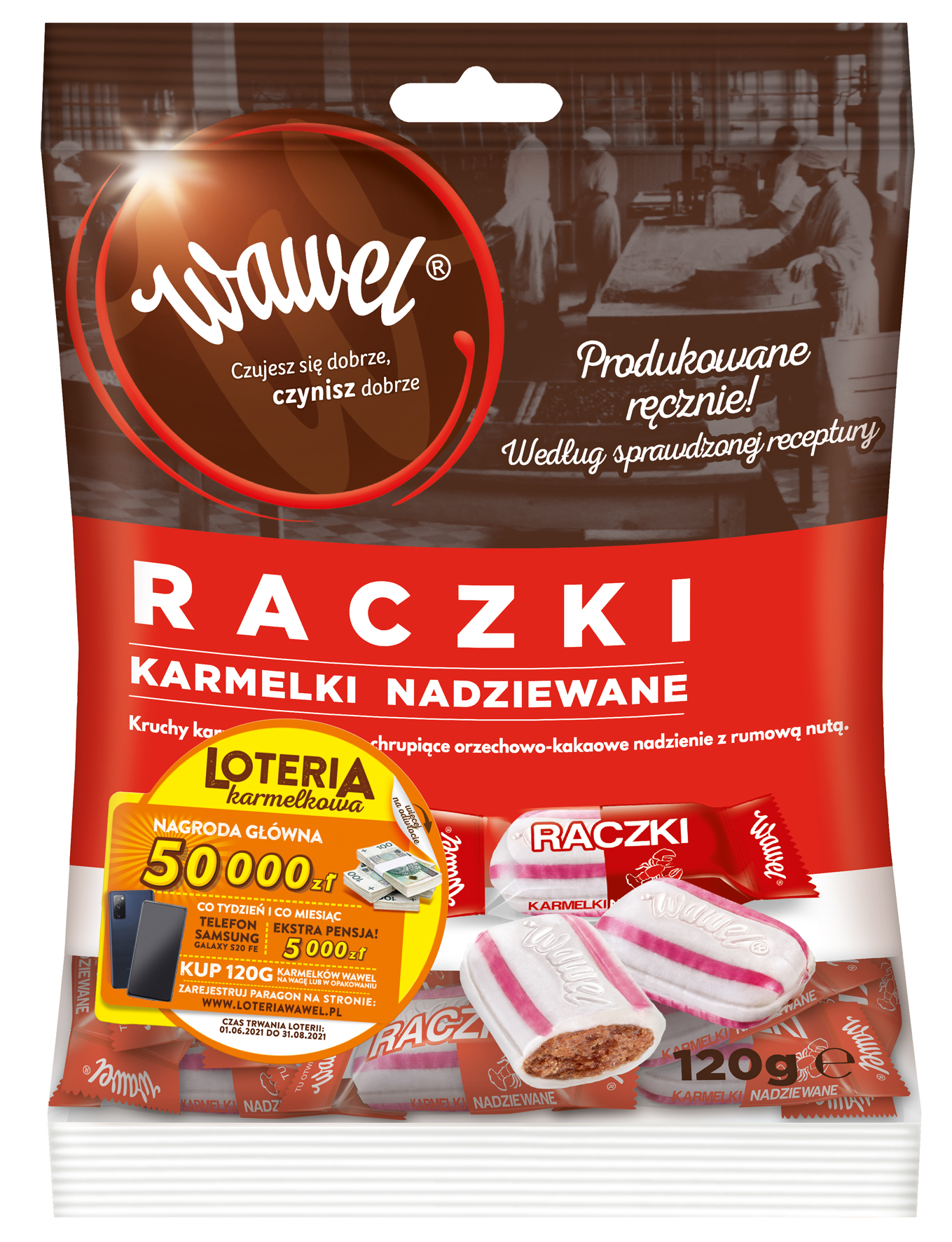 Od 1 czerwca przez kolejne trzy miesiące, produkty wspiera Loteria Karmelkowa z ekstra nagrodami oraz intensywna kampania promocyjna. W loterii co tydzień do wygrania jest telefon Samsung Galaxy S20 FE, raz w miesiącu ekstra pensja 5 000 zł, a nagrodę główną stanowi 50 000 zł. By spróbować swoich sił w loterii wystarczy zakupić dowolny smak karmelków 120 g w opakowaniu lub na wagę i zarejestrować paragon na stronie: www.loteriawawel.pl.