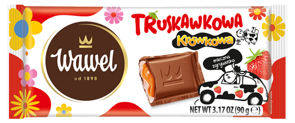 Truskawkowa Krówkowa Milk chocolate with caramel and milk-strawberry filling 90 g